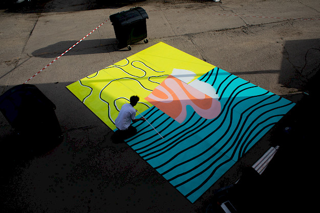 Die Challenge: mit nur 6 Wochen Vorlauf, nicht nur der fantastischen Kooperation, sondern auch den Vorgaben des Festivals – nichts an der Fassade direkt verändern zu dürfen, gerecht zu werden.